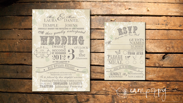 I first created a series of 5 full suite designs which I took to the Gold Coast Wedding Expo, and acted as if those had been previous clients I had worked with. I decided to head into weddings quite suddenly and hadn’t really researched much on what I was going to charge, or costs, etc. So I actually started selling at a very low price, which was unsustainable. The benefit is that I got to secure some real clients, which gave me more to add to my portfolio.