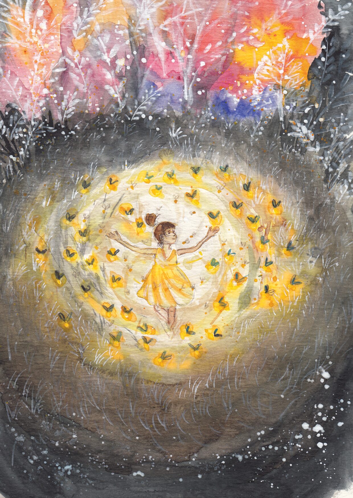 They gave me a list of words they wanted illustrated, so i set about painting up some watercolours to match the words. The idea was children’s illustrations but still with a whimsical light feel. We had A for alien, D for dragon, F for fireflies…