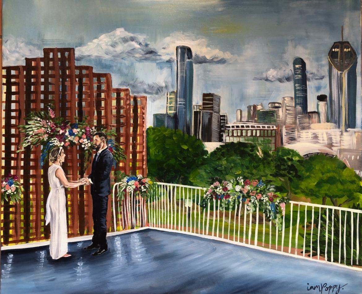 Luckily for me, the set-up is super simple so I was up and painting within minutes and was able to capture the bride and groom, an iconic section of the Greek Club balcony and city views. I love this painting, super simple but effective.