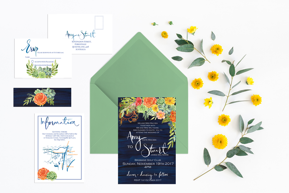 - Original Package (Invites 120x180mm and RSVP 105x148mm)