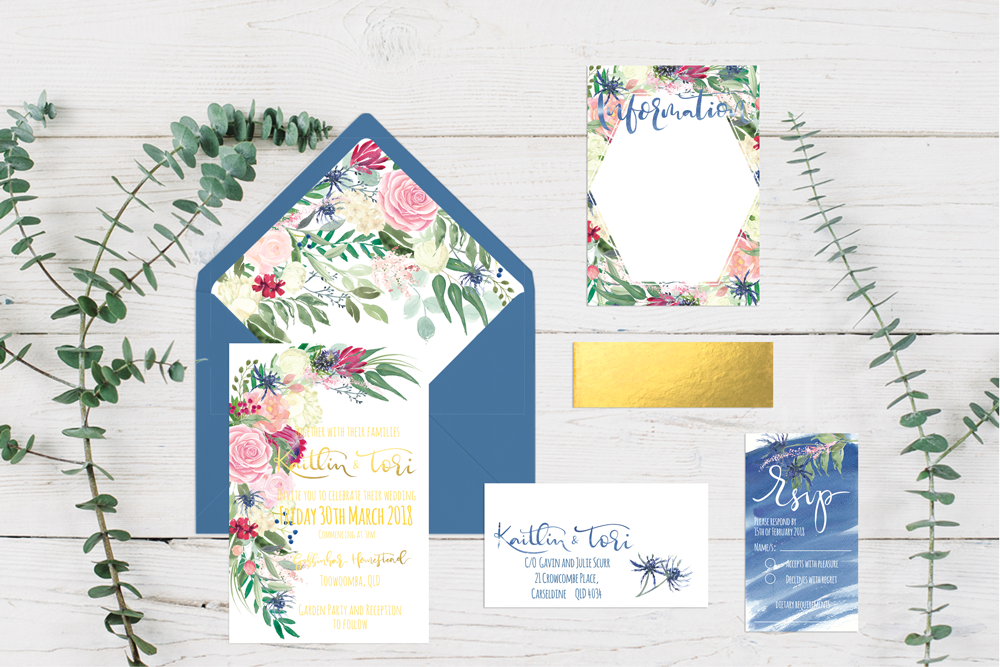Featuring hand lettering, watercolour florals and complimenting typography.