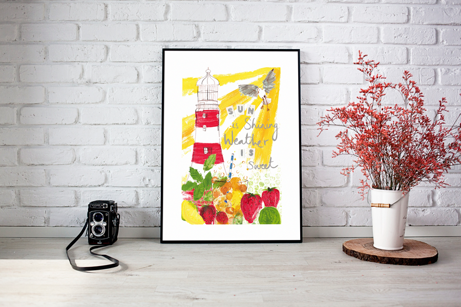 This print was inspired by long hot summers spent in the UK living with my best friend. Nothing was better than sitting in the park by Plymouth Hoe, sipping on our Pimms and Lemonade. Let the summer into your living room with this vibrant and summery lighthouse print by iampoppy.