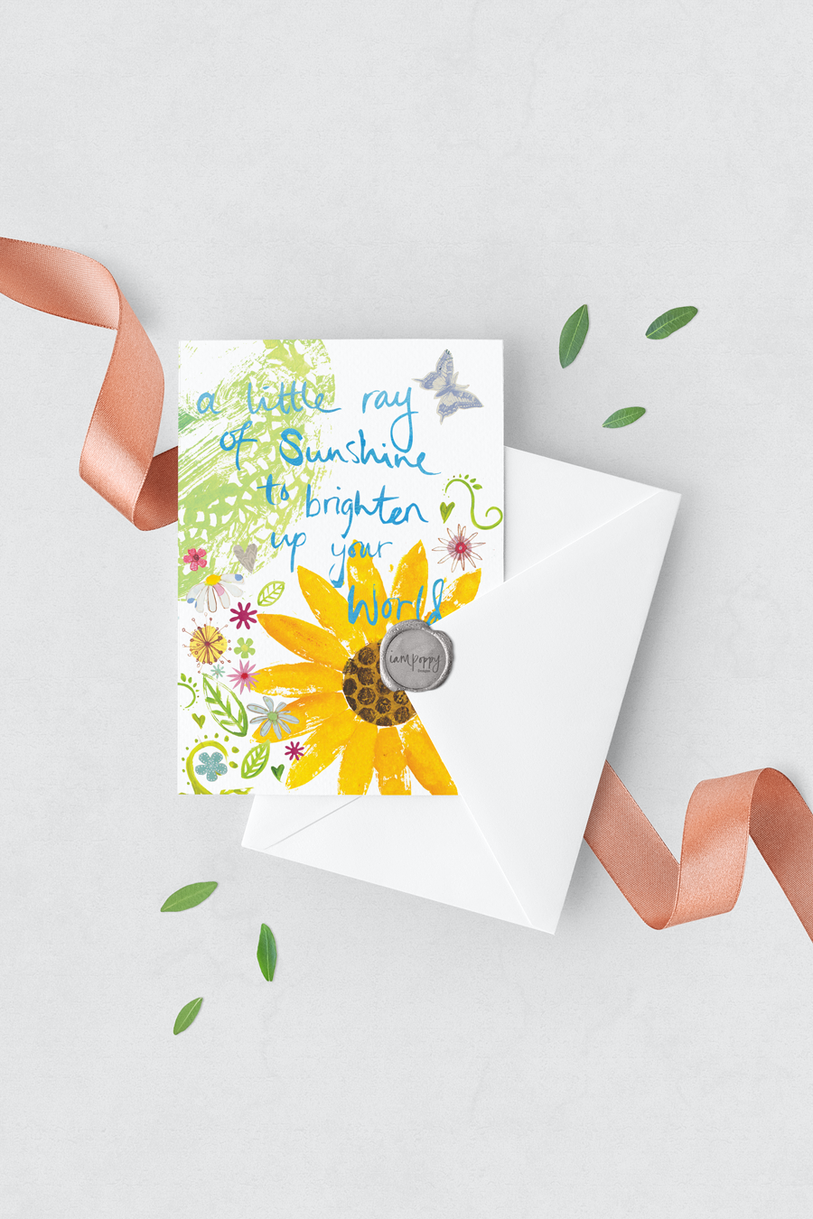 A little ray of sunshine to brighten up your world. A beautiful card intended for the birth of a new baby. It can be used for any occasion, adding a touch of colour into peoples lives. A wonderful card inspired by my love of planting sunflowers every year in primary school. Living in Holland as a child, it also brings back memories of the sunflower fields that bring so much happiness into my thoughts.