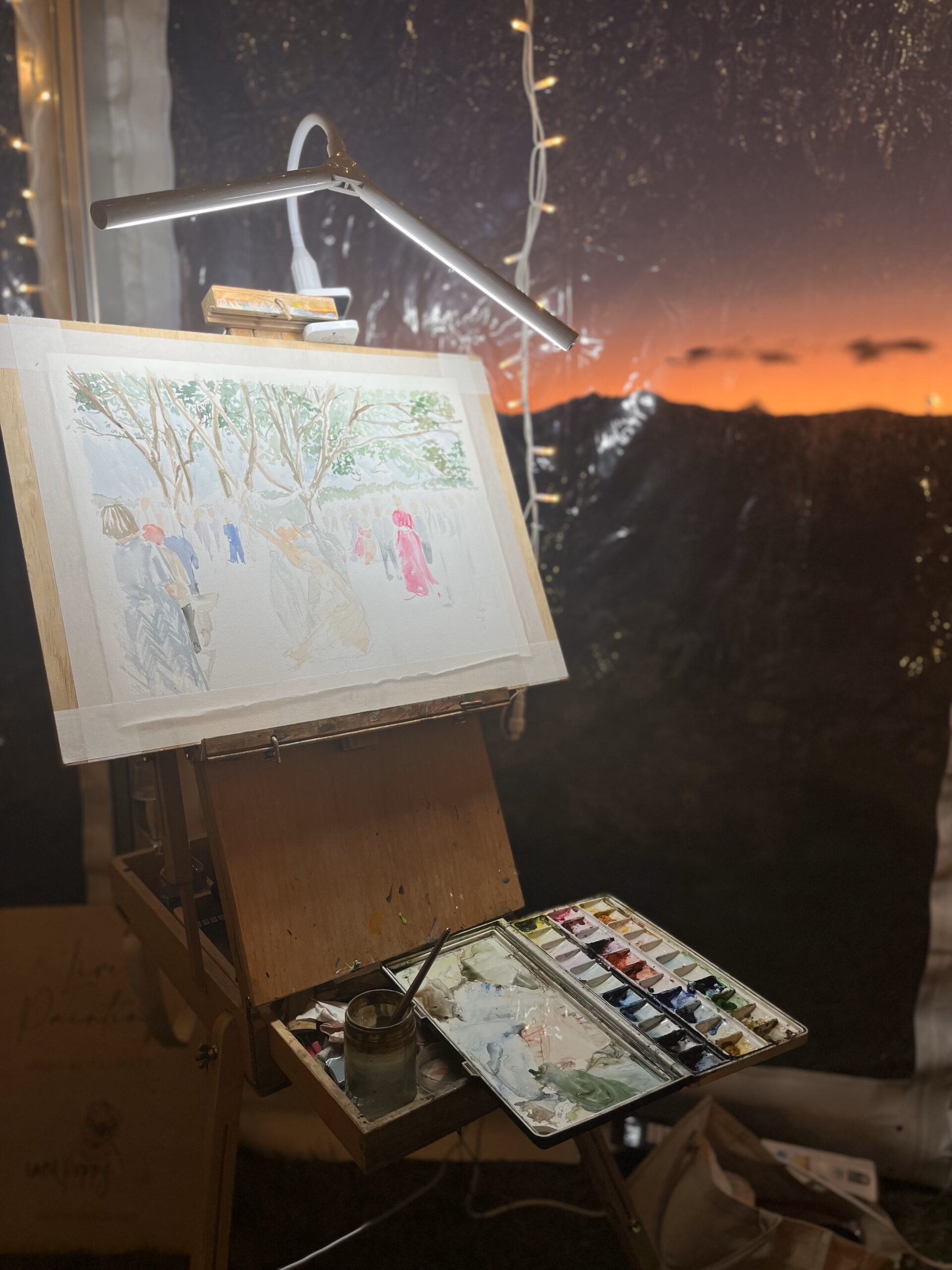 Hello, fellow art enthusiasts! 🎨 Today, I’m thrilled to take you behind the scenes of my watercolour live painting process. Whether you’re an aspiring live artist or simply a lover of creativity who’s here for a sticky beak, ultimately, I hope to share some insights that will inspire you to embrace the whimsical world of watercolors.